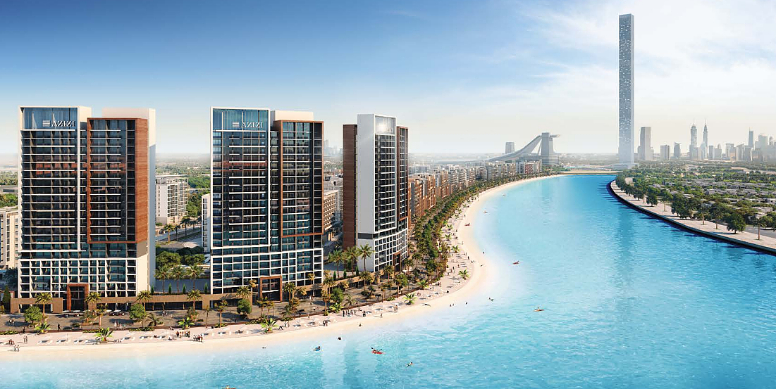 Lägenheter med en Kristallagun i ett Komplex i Dubai Meydan