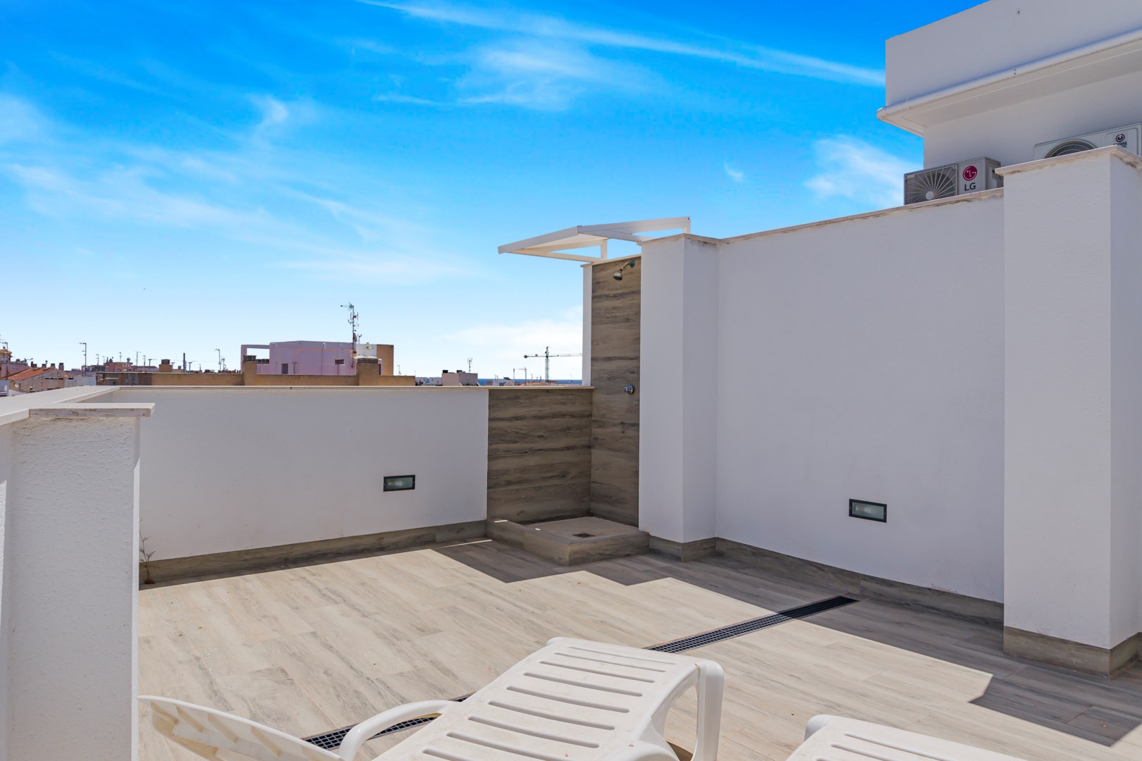 Välkommen till denna stilfulla och moderna taklägenhet, perfekt belägen mitt i centrala Torrevieja. Bostaden är nyproducerad 2023 och erbjuder ett bekvämt och bekymmersfritt boende med närhet till stadens puls, stränder, restauranger och all tänkbar service. Lägenheten har en genomtänkt planlösning