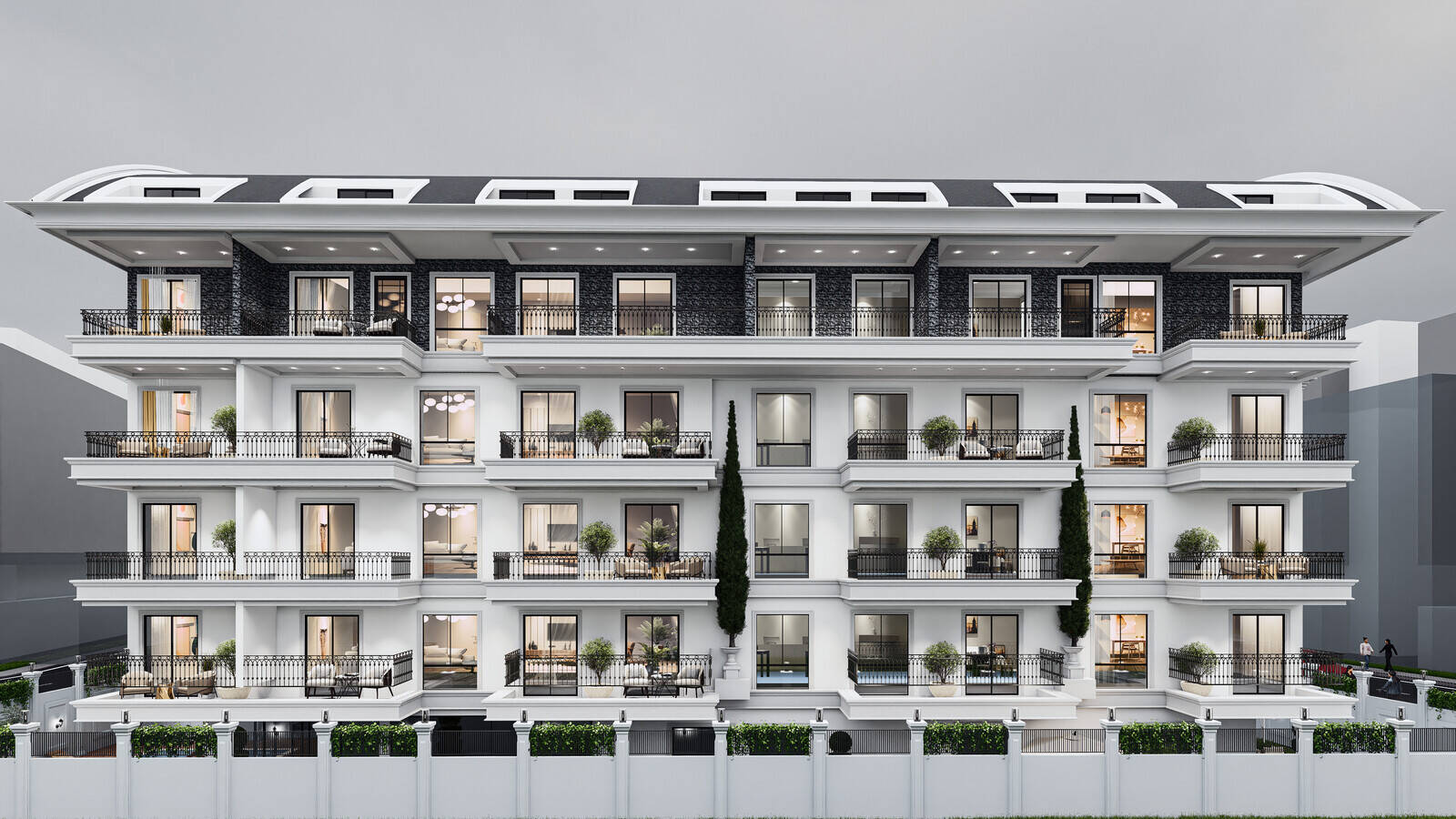 Lägenheter till salu i ett komplex med stadsutsikt i Alanya Lägenheterna ligger i ett enblockskomplex byggt på en yta av 1154 kvm. Komplexet erbjuder en pool, gemensam trädgård, lusthus, gym, bastu, jacuzzi och lekplats. Lägenheterna har ståldörrar, PVC-fönster och köksbänkskivor i granit.
