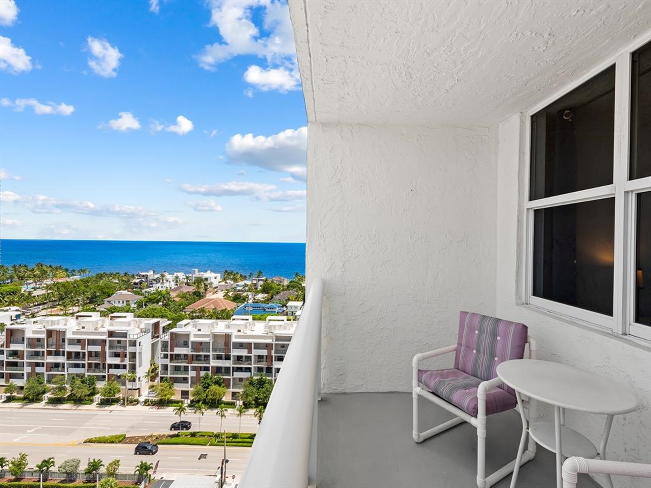 Rymlig 2-rumslägenhet högt upp i byggnaden endast 150 m till stranden till salu i Fort Lauderdale. Balkong med panoramavy över hav, strand och" Intracoastal". Nyare kök. Mycket fräsch lägenhet. Nyöppnat Publix snabbköp precis över gatan. Nära till allt, strand, affärer, restauranger m.m. På området