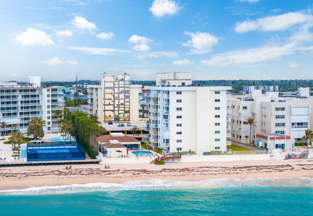Modern 2-rumslägenhet till salu granne med stranden och Atlanten i Palm Beach Funktioner inkluderar kakelbänkar i köket och orkanluckor. Området har 24-timmars dörrvakt, uppvärmd pool, 2 stora grillar, gym, gott om gästparkering, biltvätt och belägen front mot stranden. Svensk visning och hjälp med