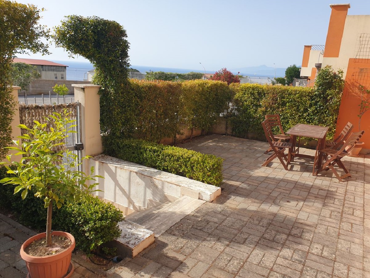 2-rums marklägenhet med terrass och utsikt över havet till salu i Borgonovo, Pizzo. Inhägnad insynsskyddad terrass och trädgård om hela 60 m2 med 360 graders vy. Säljs fullt utrustat och fullt möblerad. Anläggningen består av lägenheter med 2 och 3 rum som alla är elegant designade med italiensk