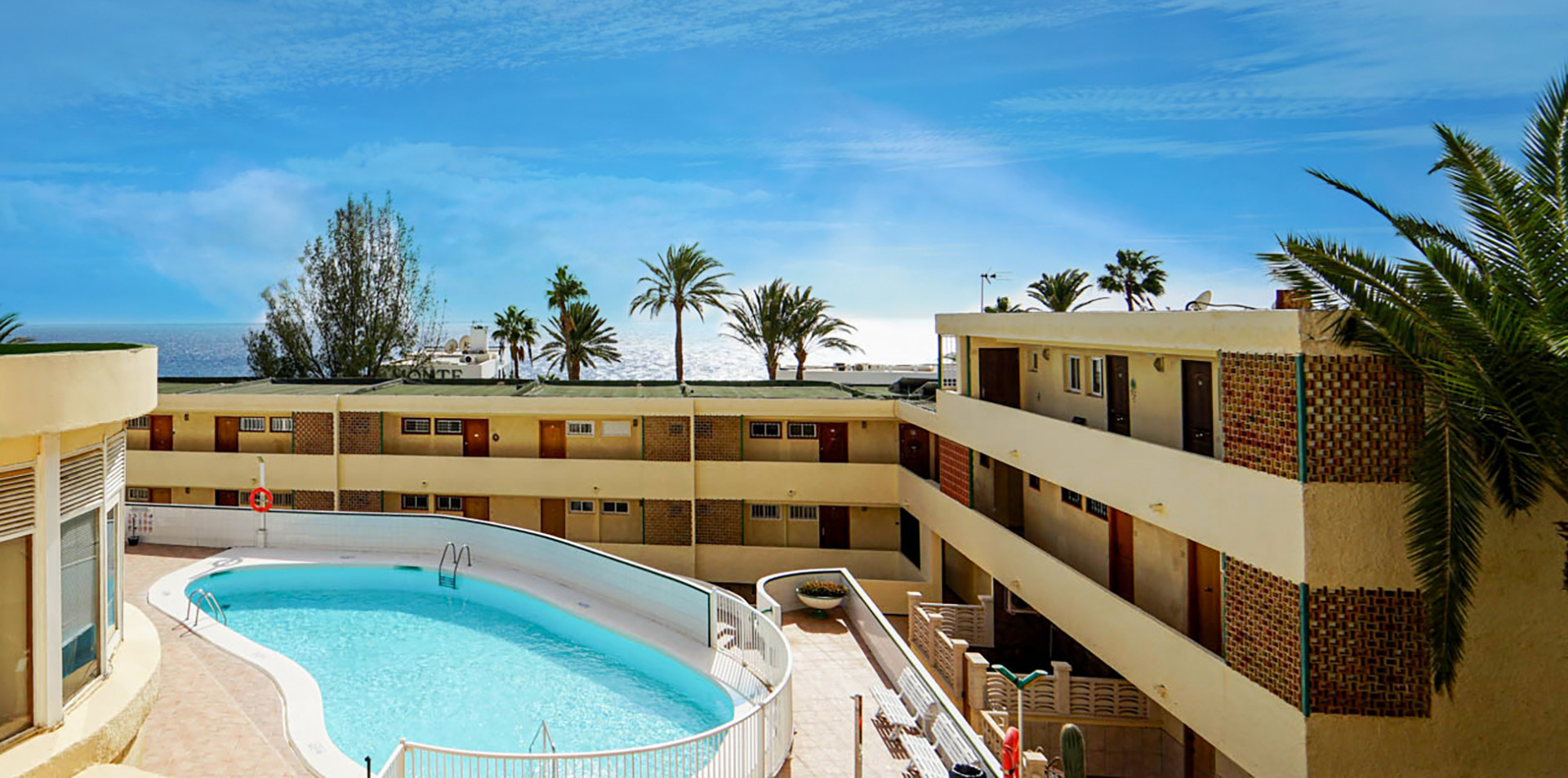 Söt lägenhet med balkong, havsutsikt, pool och uthyrningsmöjligheter Upplev denna ljusa och välplanerade studiolägenhet med privat balkong och fantastisk havsutsikt i det mycket attraktiva området San Agustín. Interiören är smart arrangerad för att erbjuda dedikerade utrymmen för avkoppling, sömn