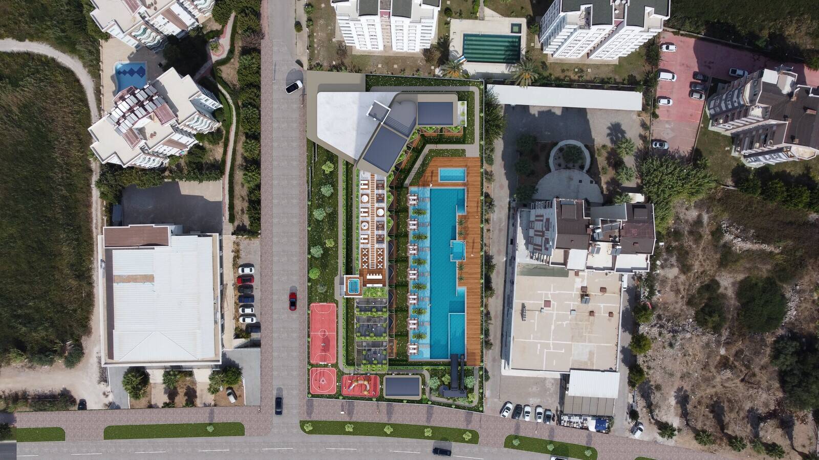Lägenheter till salu i ett komplex med pool i Kundu Antalya Alla lägenheter har smarta hemsystem, golvvärme, luftkonditionering med flera system, inbyggda vitvaror (4 stycken), naturgasinstallation och automatiska jalusisystem. Den 3 meter höga takhöjden och den funktionella planlösningen skapar