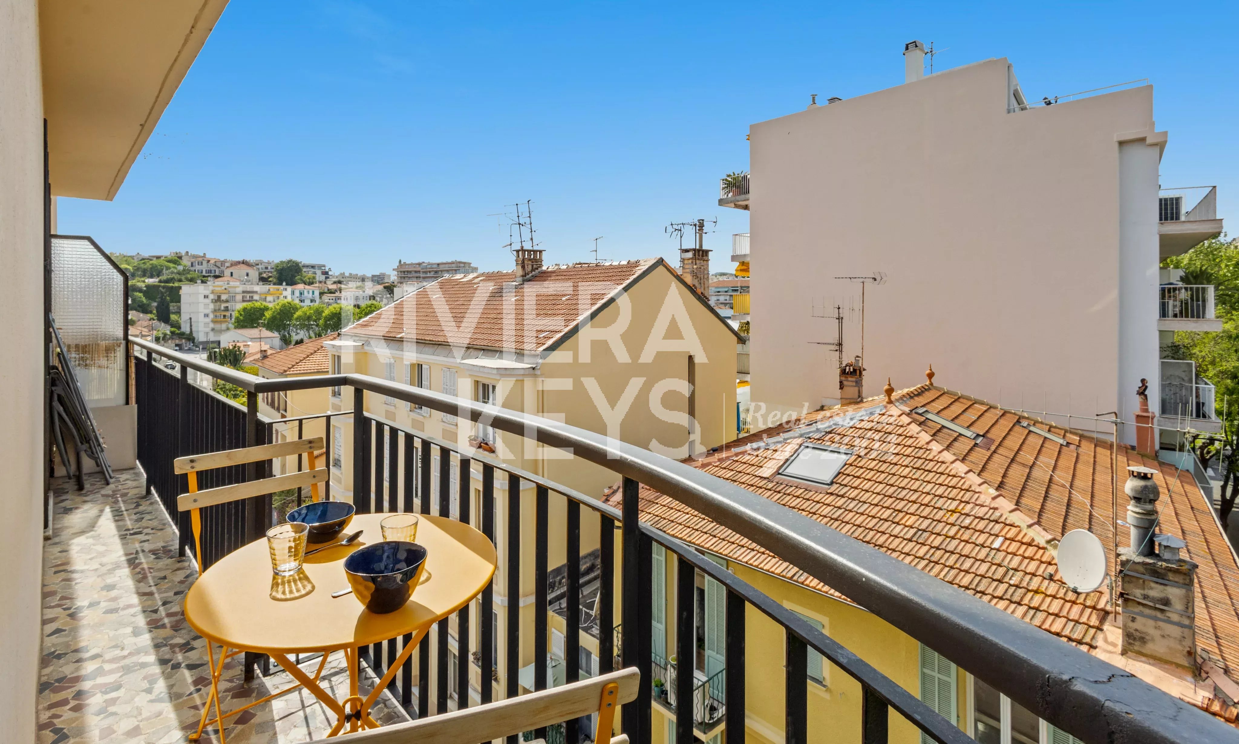 ANTIBES – Ilette: Ljus hörnlägenhet med 3 rum och balkong Denna hörnlägenhet om cirka 56 m² ligger mitt i stadens hjärta på Boulevard Foch, bara 5 minuters promenad från Plage du Ponteil och nära butiker, kaféer och alla vardagstjänster. Lägenheten ligger på sjätte våningen i ett residens med
