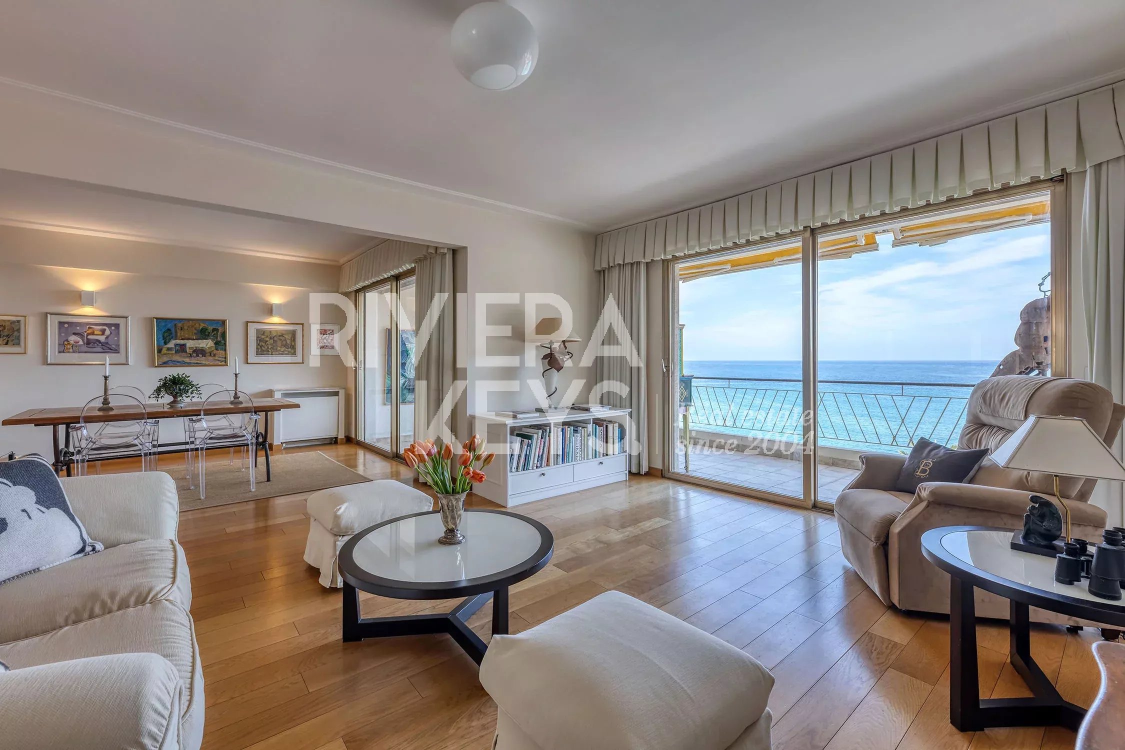 ROQUEBRUNE-CAP-MARTIN: Magnifik 4-rumslägenhet vid havet med dubbla terrasser Sällsynt tillfälle – Promenade du Cap: Högt upp i huset finner du denna fantastiska hörnlägenhet som imponerar med sitt generösa ljusinsläpp, sina rymliga ytor och en välplanerad, luftig planlösning. Bostaden erbjuder