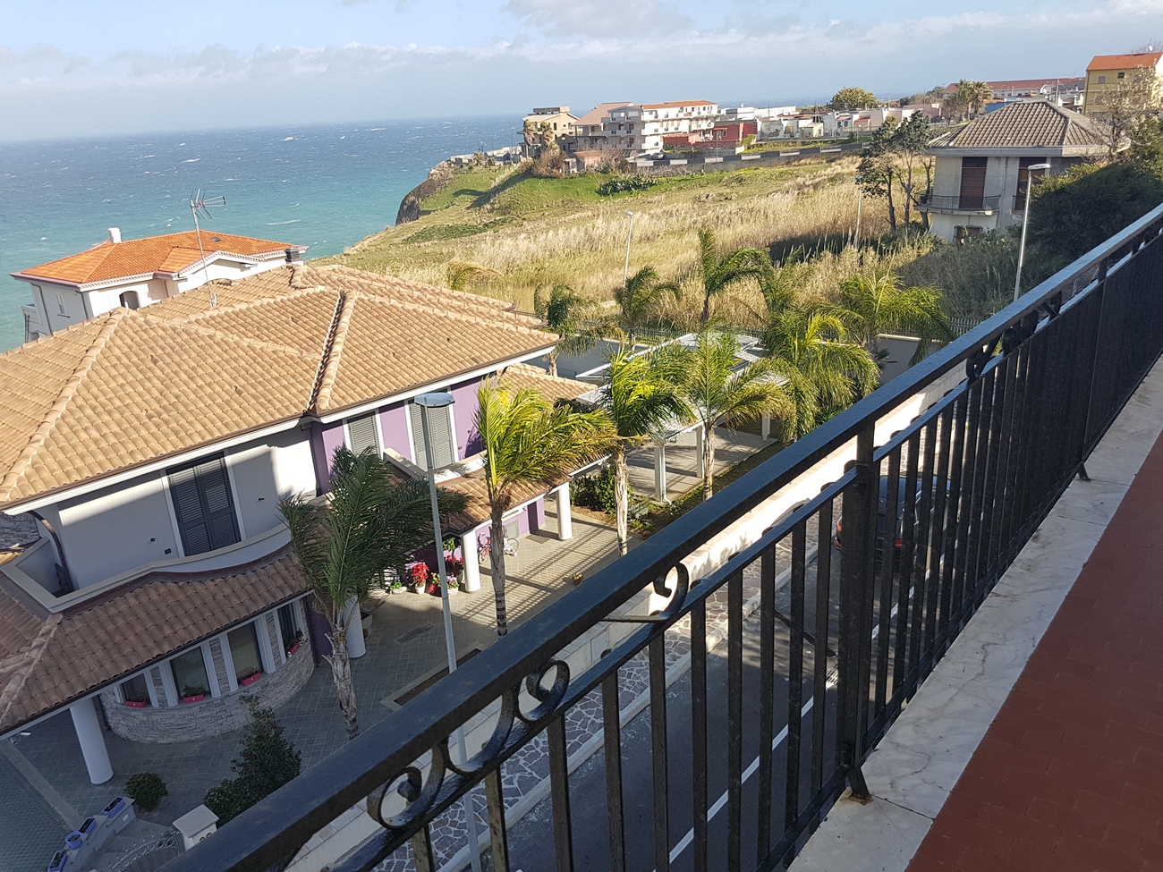 3-rumslägenhet med balkong och underbar havsutsikt till salu i vackra Briatico endast 400 meter från havet och stranden. Möjlig göra om till en 4-rumslägenhet. Denna byggnad med tre lägenheter till salu byggdes på 1970-talet av en lokal familj och har byggts till en mycket bra standard med det bästa