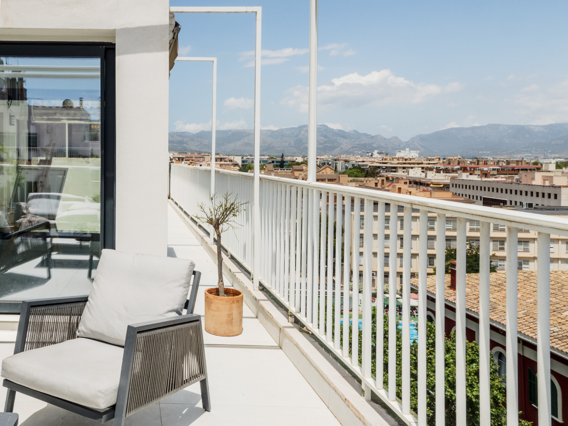 Upptäck ditt dröm-penthouse i Palma – där modern design möter enastående panoramavyer. Välkommen till denna exceptionella bostad i det eftertraktade Bons Aires-området, bara 10 minuters promenad från Plaza España och ett stenkast från de charmiga kaféerna, butikerna och restaurangerna på