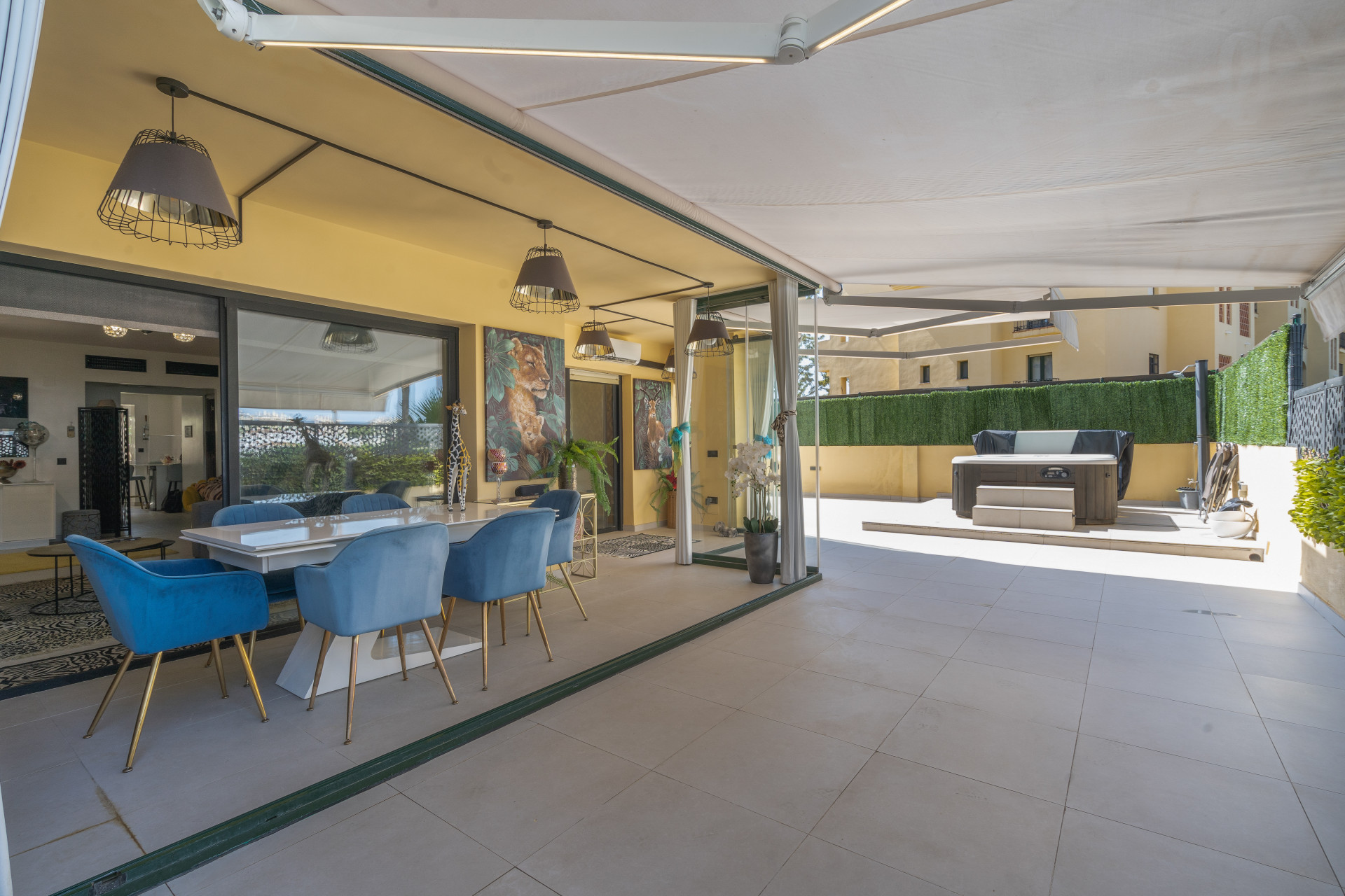 Presentera en noggrant renoverad markgolv lägenhet i den prestigefyllda La Resina Golf området Selwo, Estepona. Denna exceptionella fastighet erbjuder en perfekt blandning av modern lyx och nyckelfärdig bekvämlighet, utformad för en sofistikerad livsstil. Interiören utstrålar modern elegans,