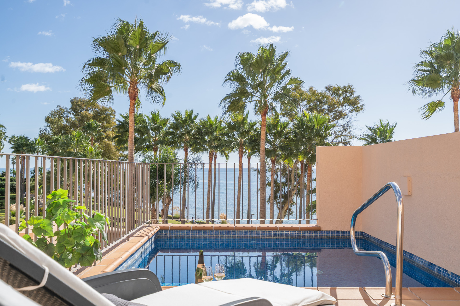 Välkommen till denna lyxiga lägenhet i den eftertraktade urbanisationen Bahía de la Plata, endast 20 minuters promenad från Esteponas stadskärna. Bostaden erbjuder två rymliga sovrum och två eleganta badrum, ett separat fullt utrustat kök samt ett ljust vardagsrum med direkt utgång till en terrass