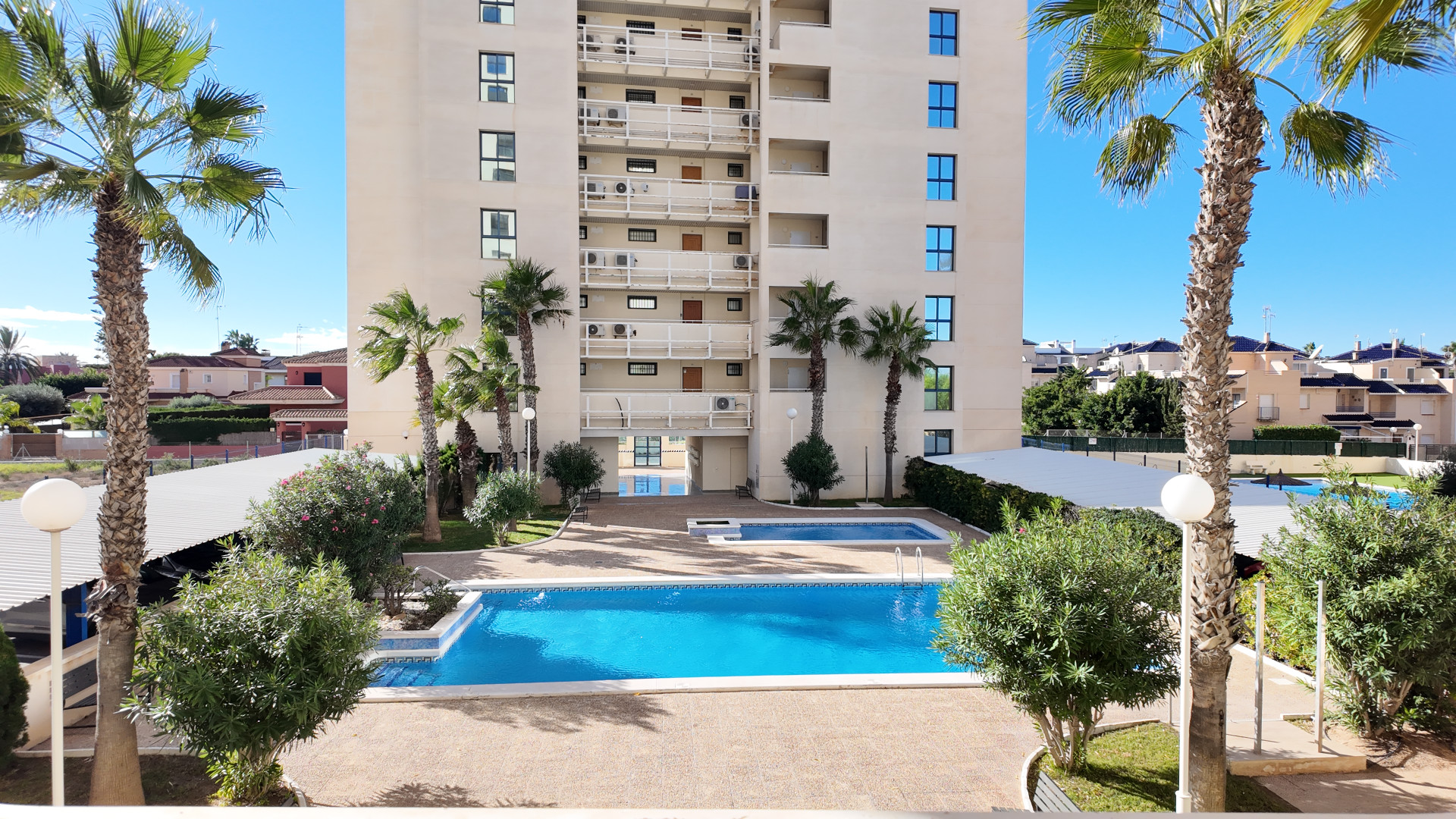 Denna vackert renoverade lägenhet ligger precis utanför det livliga centrumet av Torrevieja, Alicante, och erbjuder den perfekta kombinationen av modern komfort och kustnära boende. Med en generös yta på 93 m² har bostaden två sovrum och två badrum, inklusive ett stilfullt en-suite. Bara några
