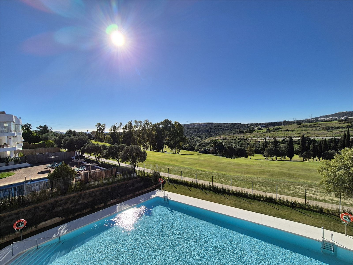 R4987780 - Penthouse med utsikt över Estepona Golfbana och naturen som du har direkt utanför dörren. Det är en ny urbanisation som blev färdigställd i slutet på 2024, ett område i med fler bostadsprojekt och infrastruktur på gång. Parkeringsplats ingår utomhus, inom bostadsområdet som är