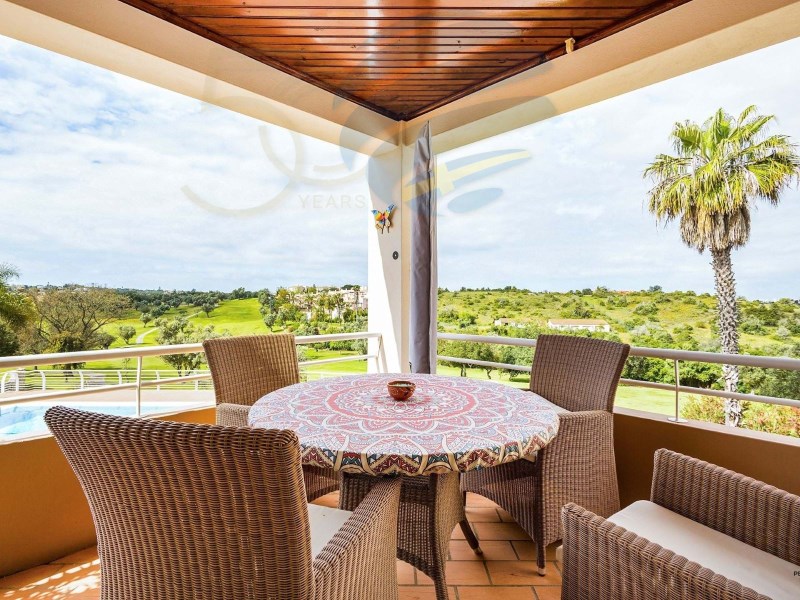 Mysig lägenhet i ett inhägnat område med pool och utsikt, trädgårdar och golf Denna bekväma lägenhet, belägen i ett inhägnat område med gemensam pool och utsikt över trädgårdarna och golfbanan, är fördelad enligt följande: vid inträdet har man en entréhall med inbyggd garderob, sedan har vi ett