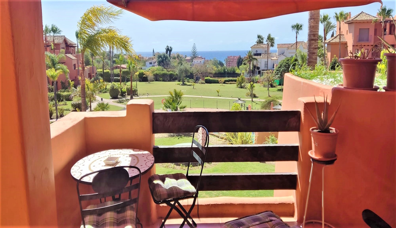 3-rumslägenhet med havsutsikt till salu i Cancelada, Estepona. Fullt utrustad lägenhet med hög kvalitet i material och finish. Med A/C varmt och kallt, tillhörande garageplats och förråd. Svensk visning och hjälp med köpet på plats. Kontakta oss för att köpa lägenhet i Estepona. Vi har ett stort