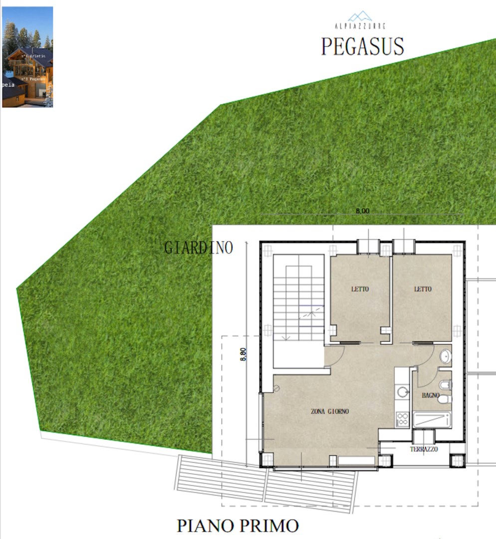 3-rumslägenhet under uppförande till salu i Limone i provinsen Cuneo i regionen Piemonte. Lägenheten ligger på första våningen i huset. Dess utmärkande drag är den panoramiska upphöjda trädgården om 130 m2, som sträcker sig platt längs bergsryggen. Å ena sidan erbjuder lägenheten en fantastisk