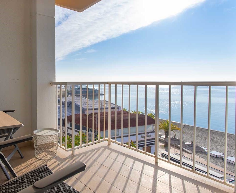 Vi är glada att presentera den här otroligt fina lägenhet på första linjen i Lo Pagan. Här bor du med havet som granne! När du kliver in i lägenheten möts du av ett modernt och ljust kök som leder dig vidare in till vardagsrummet och matplatsen. Från vardagsrummet kommer du ut till den mysiga