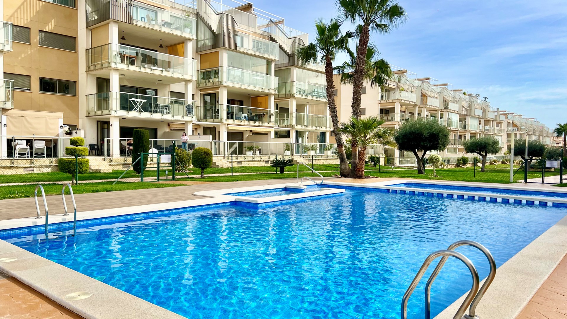 Varmt välkomna till denna spektakulära lägenhet i Los Dolses! Denna moderna och ljusa lägenhet ligger på tredje våningen och erbjuder två sovrum med inbyggda garderober, två badrum med golvvärme och en öppen planlösning mellan köket och vardagsrummet. Från vardagsrummet har du direkt tillgång ut