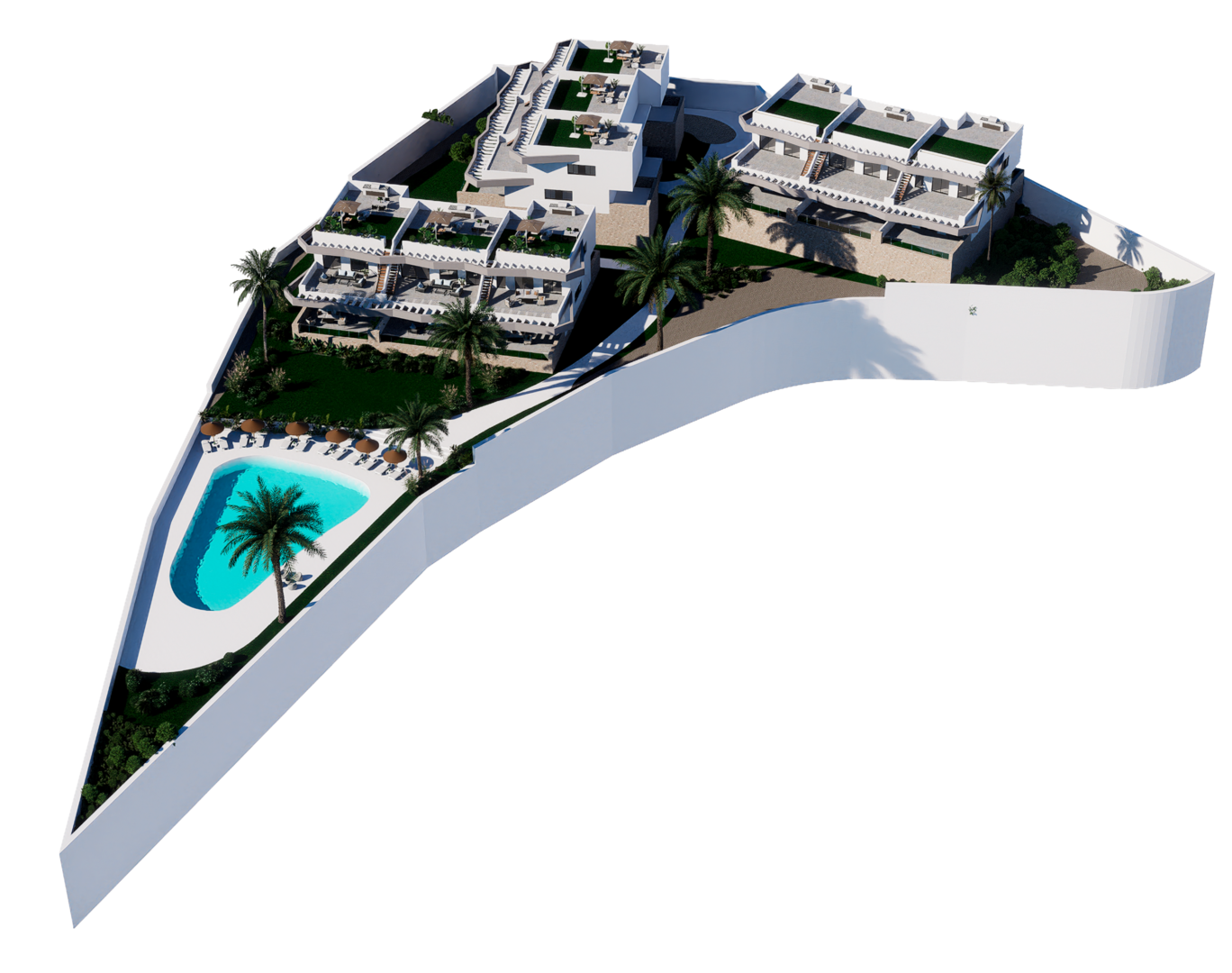 Varmt välkomna till denna exklusiva nyproduktion i vackra Finestrat! Bostadskomplexet består av 18 bostäder med panoramautsikt över Benidorm och Medelhavet. Takvåningarna erbjuder två sovrum, två badrum och en öppen planlösning mellan kök och vardagsrum. Från vardagsrummet nås den första