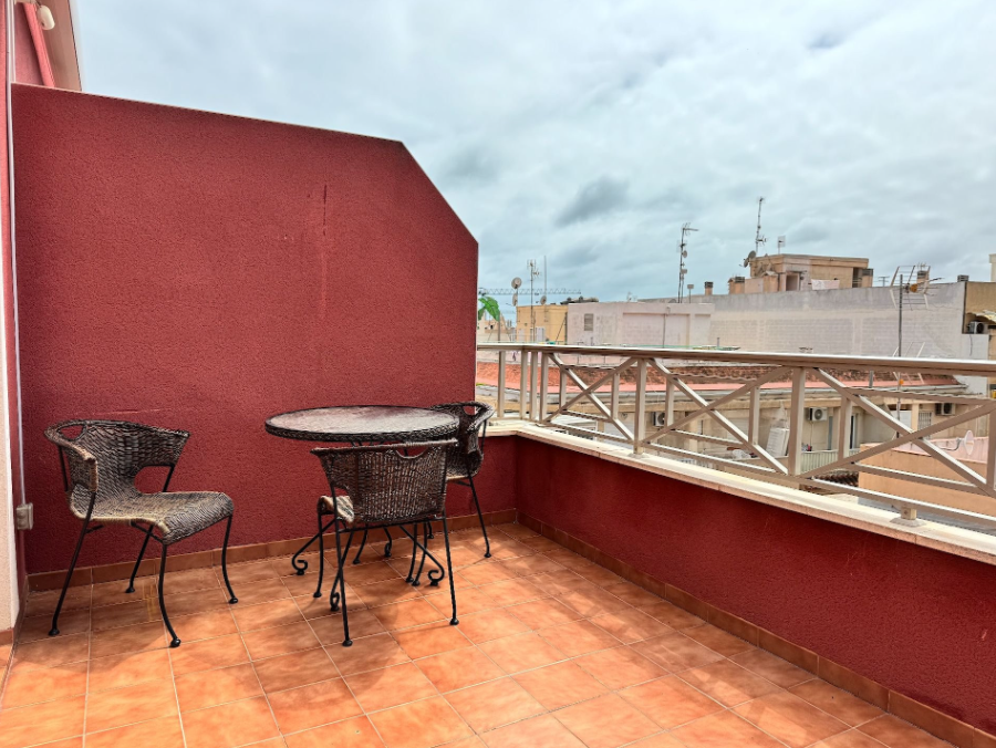 Välkommen till denna underbara takvåning endast ett stenkast från populära Playa del Cura och den vackra strandpromenaden i Torrevieja! Här erbjuds ett bekvämt och avkopplande liv vid kusten, samtidigt som du har stadens utbud precis runt hörnet! Lägenheten erbjuder två rymliga sovrum med
