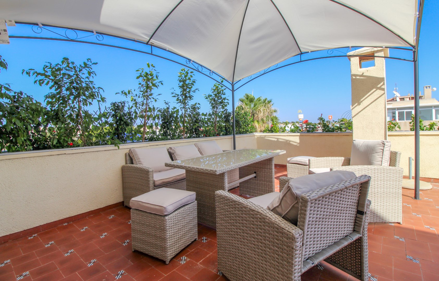 Varmt välkomna till denna fantastiska takvåning i populära Punta Prima! Lägenheten har ett utmärkt läge, med endast 900 meter ner till stranden! Här bor du i en ljus och luftig takvåning med två generösa sovrum, två moderna badrum samt en öppen planlösning mellan kök och vardagsrum. Från