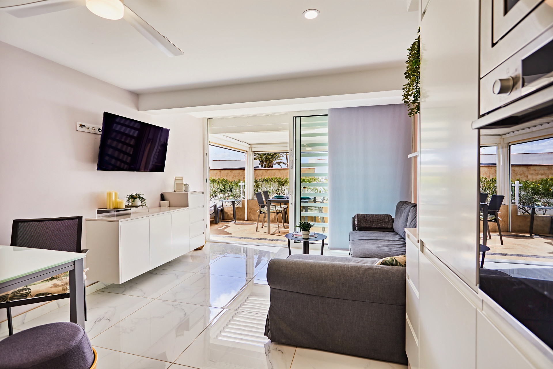 Modern designbungalow vid havet i Las Flores Bo varje dag i en modern designlägenhet omgiven av en vacker trädgård vid havet. Denna moderna lägenhet har totalrenoverats med stor smak och fokus på funktionalitet. Varje detalj har noggrant designats och byggts med kvalitetsmaterial, vilket