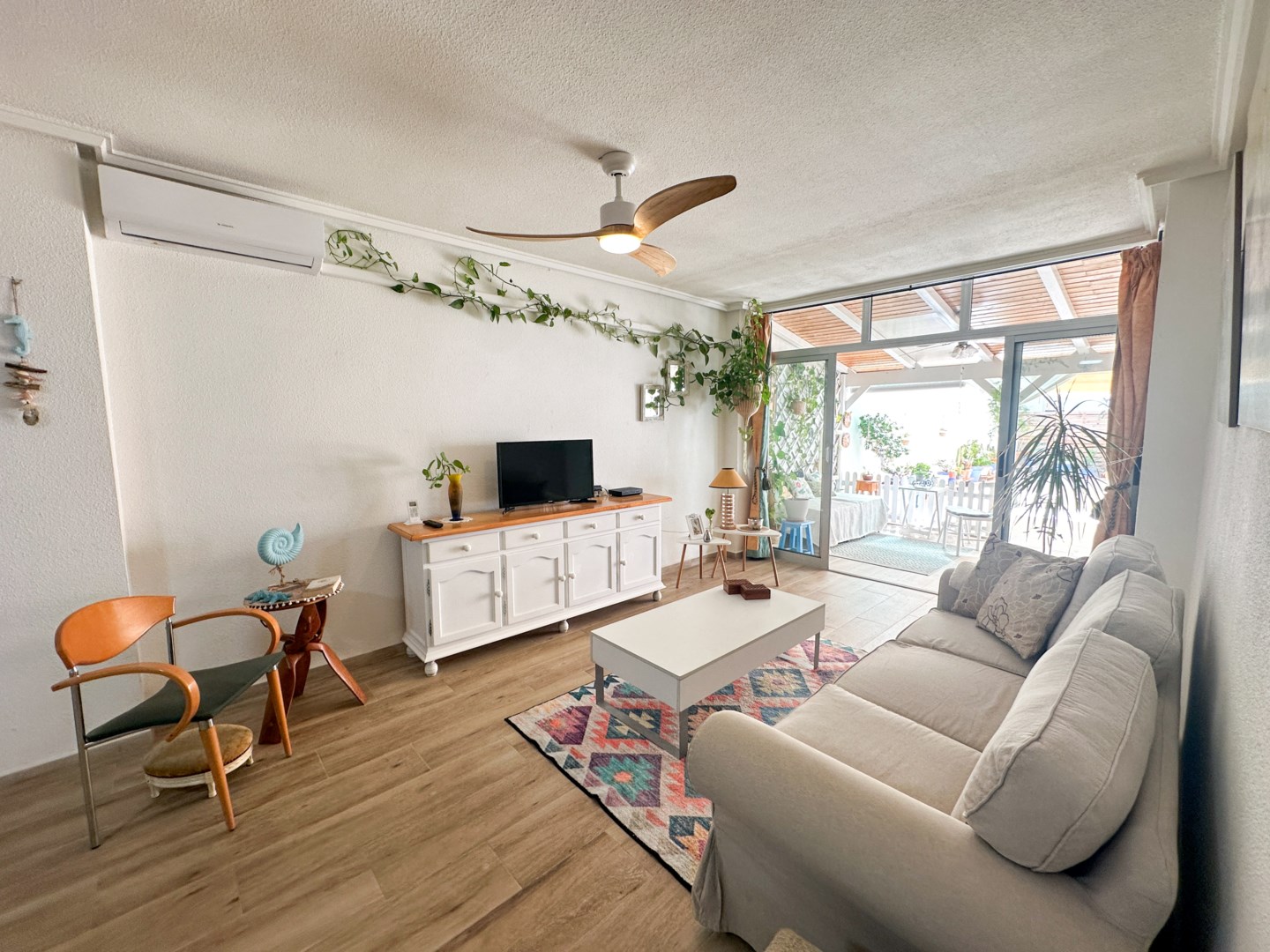 Nu presenterar vi denna välplanerade lägenhet i centrum med en rymlig uteplats! Belägen bara en gata upp från populära Playa del Cura, erbjuder denna smakfullt presenterade bostad en perfekt kombination av läge, komfort och härligt utomhusliv. Bostaden har två sovrum och ett badrum och är i mycket