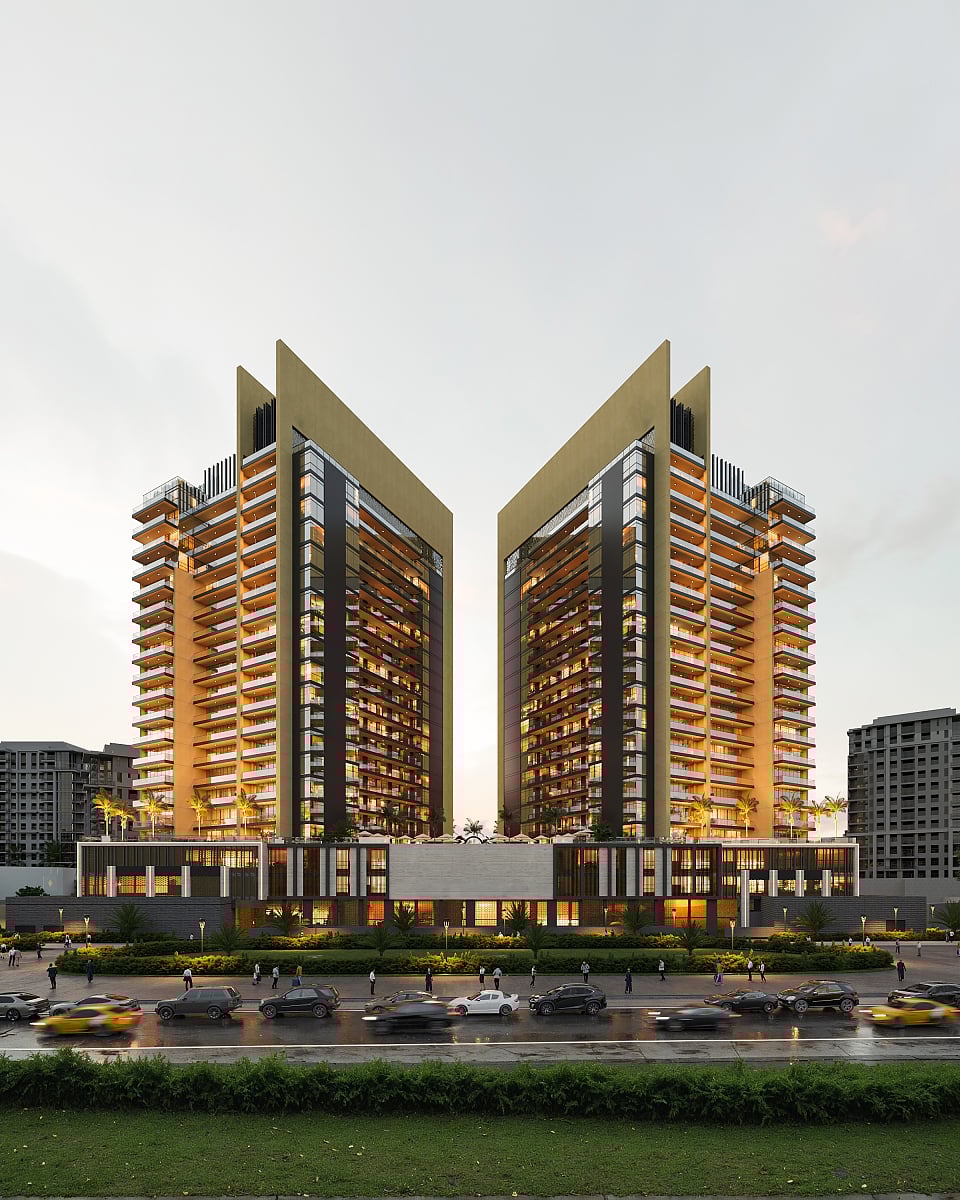 Lyxlägenheter i ett Tvåtornskomplex med Pooler i Dubai Arjan Arjan, ett livligt och snabbt växande distrikt i hjärtat av Dubai, är en modern oas som sömlöst förenar samtida lyx med stadens dynamiska energi. Regionen Arjan är känd för sin närhet till världsberömda landmärken och frodiga gröna