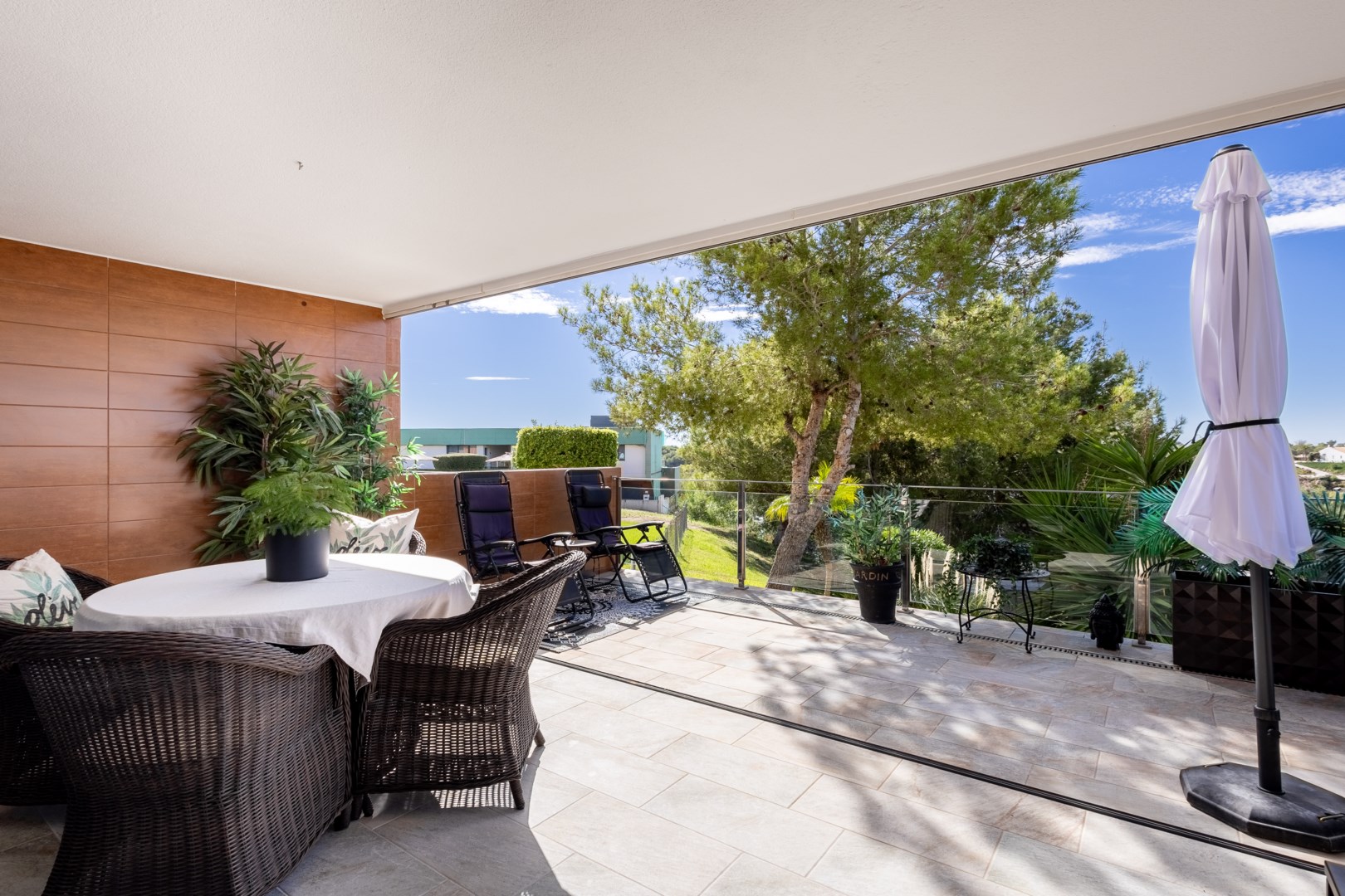 Varmt välkomna till denna fantastiska markplanslägenhet i semesterparadiset Villamartín! Lägenheten har två generösa terrasser, en mot varje väderstreck, vilket innebär att ni alltid kan välja mellan sol eller skugga. Lägenheten erbjuder två sovrum, två badrum, ett vardagsrum med öppet kök och en