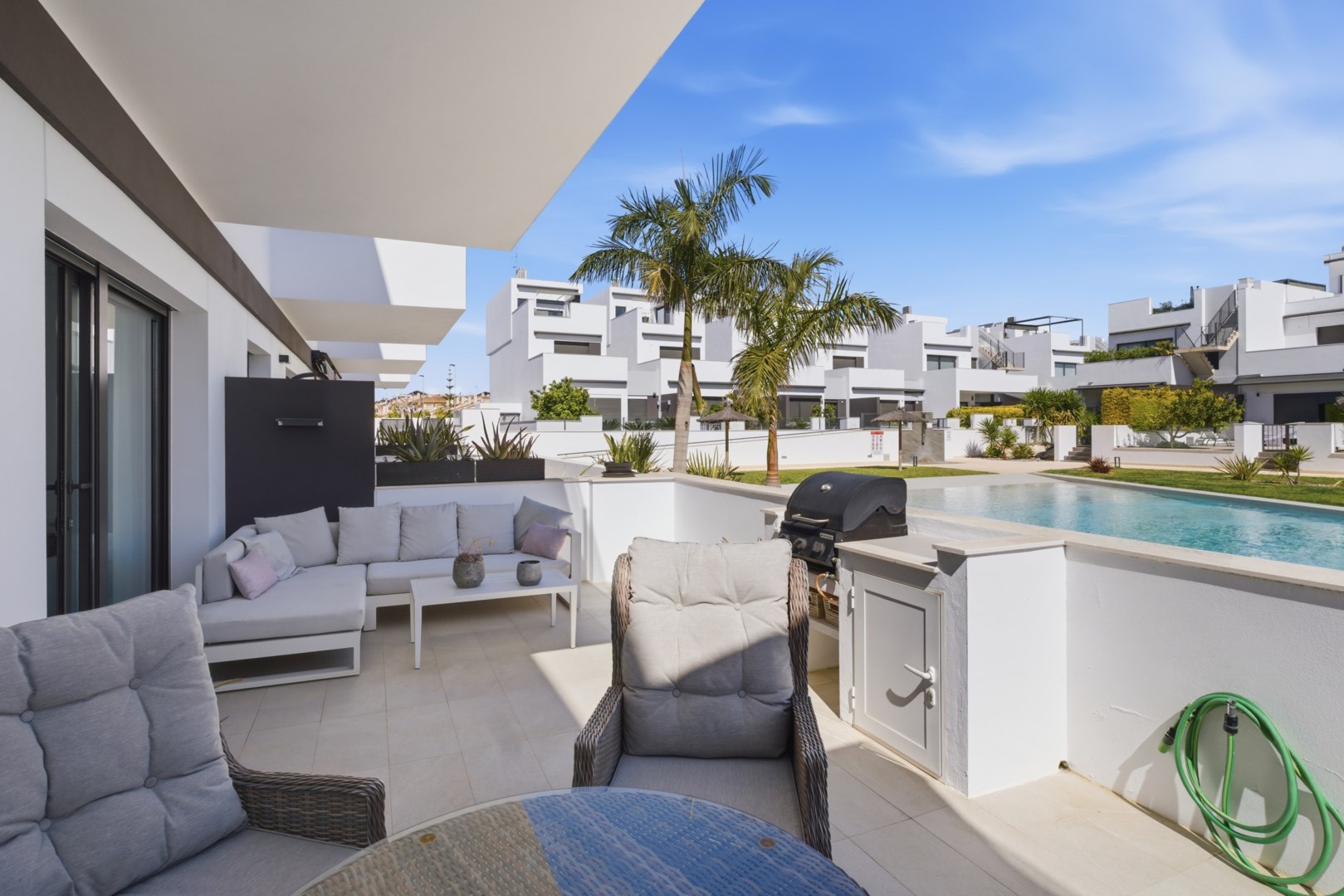 Välkommen till denna moderna och välplanerade markplanslägenhet i populära Torre de la Horadada, byggd 2018. Bostaden erbjuder en perfekt kombination av komfort, stil och ett fantastiskt läge nära både strand och service. Lägenheten har två rymliga sovrum och två stilrena badrum, vilket gör den