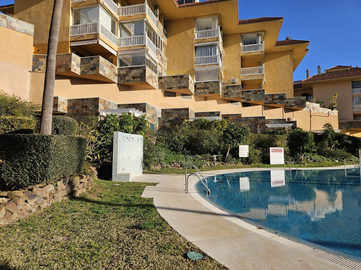 R4934239 - I populära RESERVA DEL HIGUERÓN i området El Higuerón hittar du äntligen en tre sovrumslägenhet för under 400 000 EUR. Byggd 2004 och i mycket gott skick. Med sitt sydvästläge är du garanterad ett soligt och ljust hem. Dessutom erbjuds havsutsikt. En parkeringsplats och ett förråd