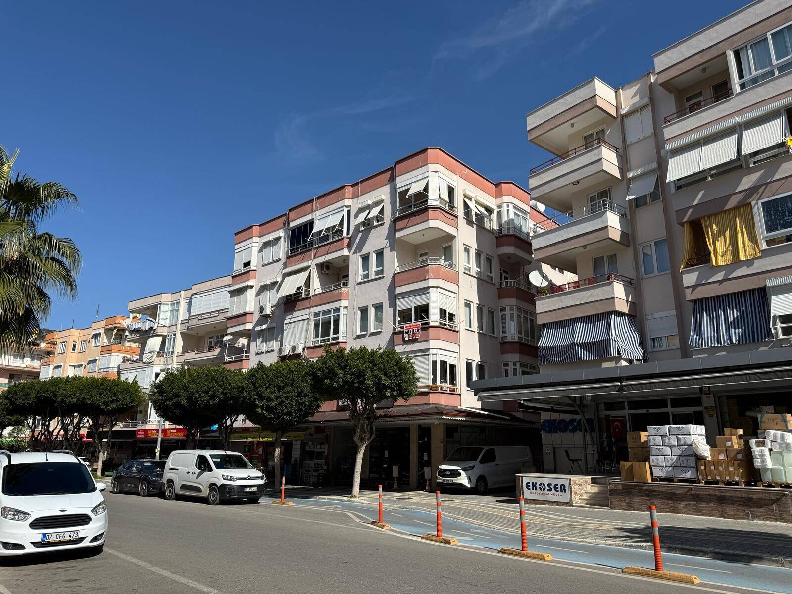 Möblerad lägenhet 500 m från havet i Alanya Lägenheten har tre sovrum, ett vardagsrum, ett vardagsrum, ett slutet kök, två badrum och två slutna balkonger. En av de slutna balkongerna har ett jalusisystem, och köket har ett vattenreningssystem. Sovrummen har dubbelsängar och sänggavlar samt
