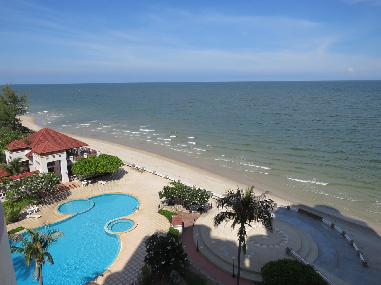 Rymlig 4-rumslägenhet med fin havsutsikt granne med stranden i Hua Hin Palm Beach Condomimium. Bästa läget precis vid stranden. Rymlig täckt balkong med med söder-, öster och norrläge, samt en mindre servicebalkong. Fullt utrustad lägenhet med kvalitetsmaskiner i köket och påkostad interiör.