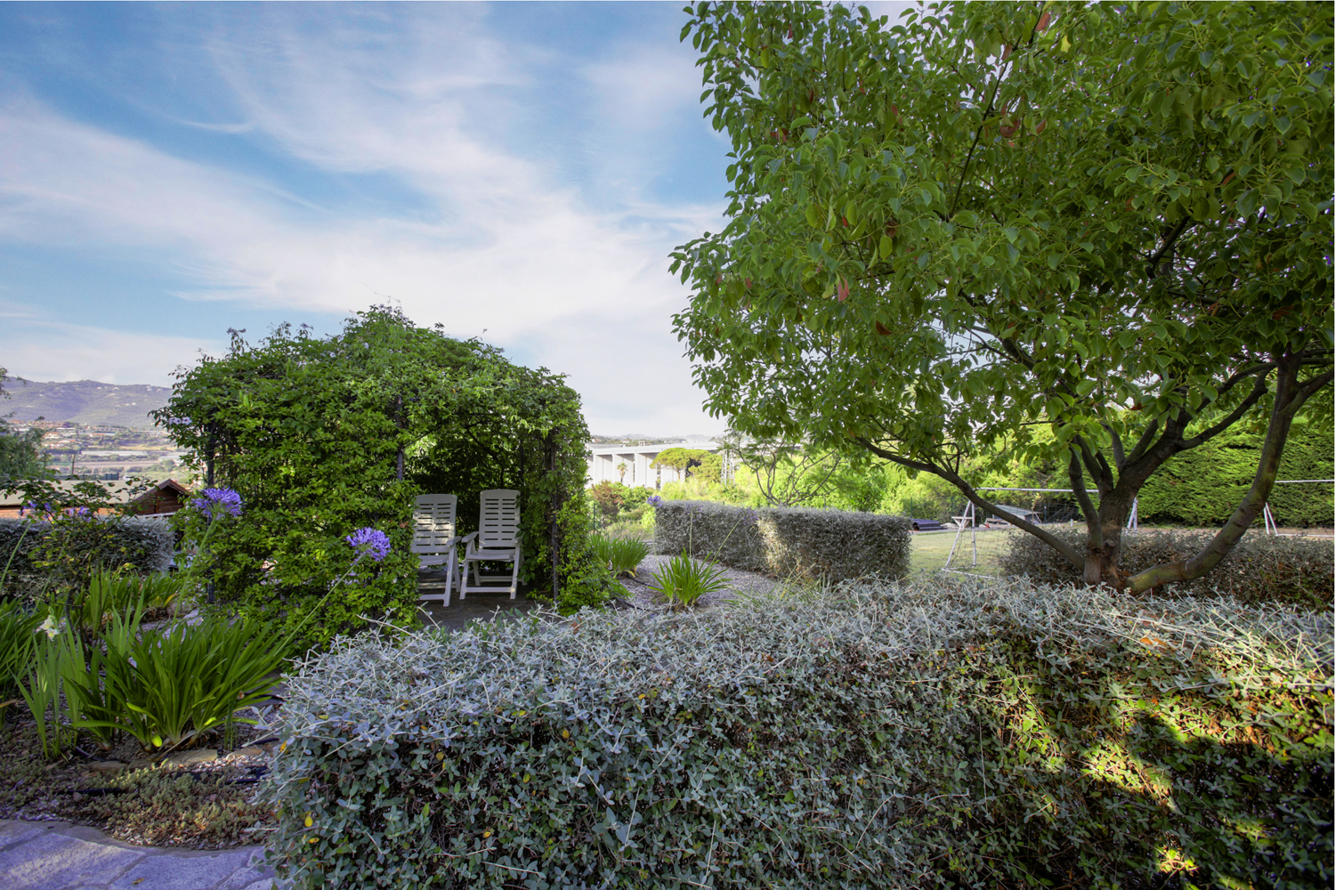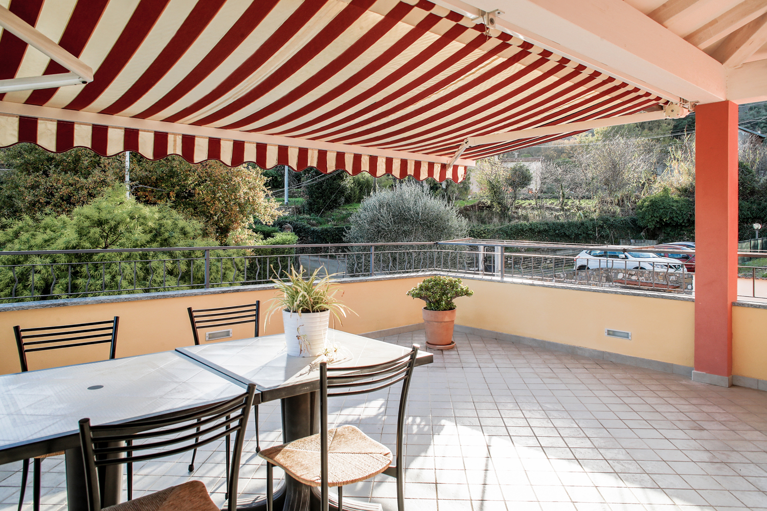 Rymlig duplexlägenhet med terrass, två parkeringsplatser, dubbelgarage, köksträdgård och grönområde i en lugn och fridfull miljö. Terrassen är cirka 25 kvm, delvis täckt av en veranda och utrustad med elektriska markiser, perfekt för att njuta utomhus oavsett årstid. Alla rum har utmärkt naturligt