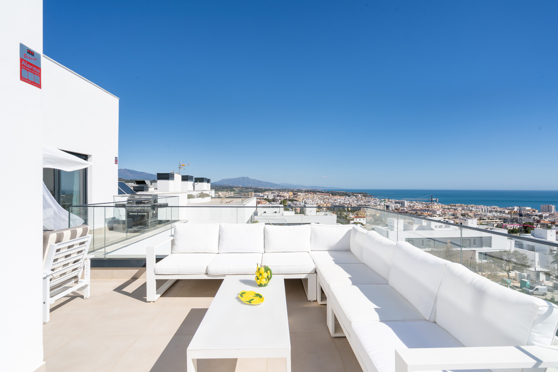 En sällsynt möjlighet att förvärva ett verkligt unikt penthouse, beläget på den högsta punkten i eftertraktade Las Mesas och med vad som utan tvekan är en av områdets finaste utsikter. Ett vidsträckt panorama breder ut sig över Esteponas charmiga stad, Medelhavet och de omgivande bergen — med total