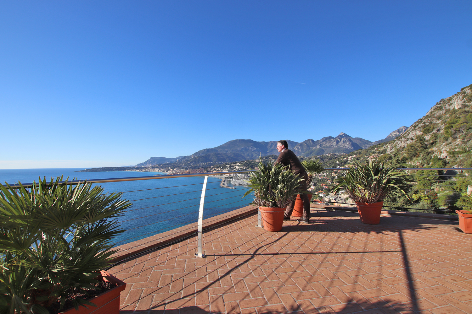 Bostäderna är belägna i en elegant och prestigefylld historisk och mycket välkänd residens,som erbjuder en pool och en tennisbana belägen i en privat park med en rik och varierad vegetation strax ovanför den berömda Balzi Rossi.Egendomen är på tre plan, belägna på första, andra och översta våningen