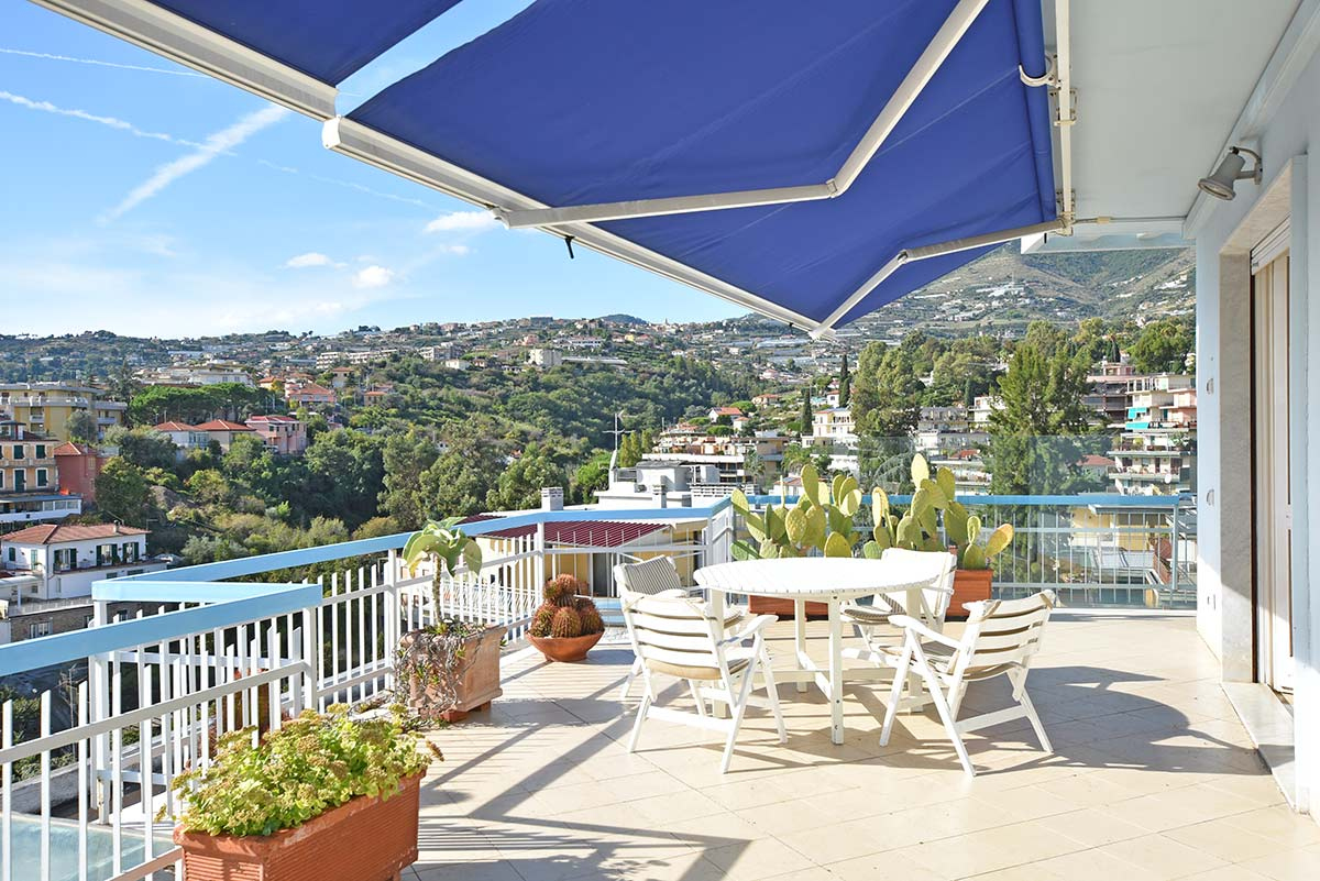 5-rums takvåning med stor terrass och havsutsikt i San Remo. Denna takvåning till salu i San Remo ligger i centrum av staden. Denna lägenhet består av entré, vardagsrum och matsal, fullt utrusat kök, fyra sovrum och två badrum. En härlig 50 m2 terrass med panoramautsikt över havet omger