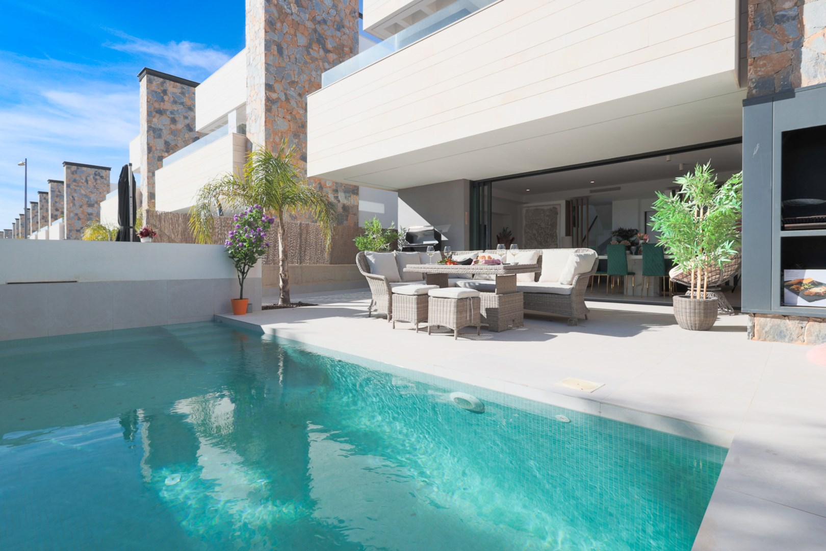Varmt välkomna till denna exklusiva villa som har allt du kan tänka dig! Som boende på Santa Rosalía Resort kan du njuta av den stora kristallklara lagunen med vit sandstrand och plamer, paddla kajak, hänga vid beach-cluben eller testa sporter som padel, volleyboll, minigolf och utomhusgym. Här