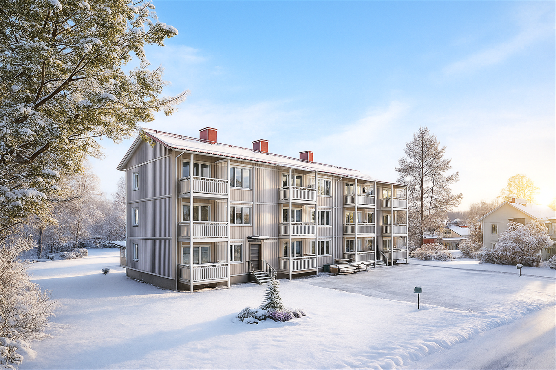Denna trevliga och lättillgängliga lägenhet erbjuder en bekväm och praktisk boendemiljö. Lägenheten ligger endast några trappsteg upp i huset och har en egen parkeringsplats direkt utanför. Vardagsrummet är lägenhetens största rum och har utgång till en balkong. Köket är mindre men funktionellt.