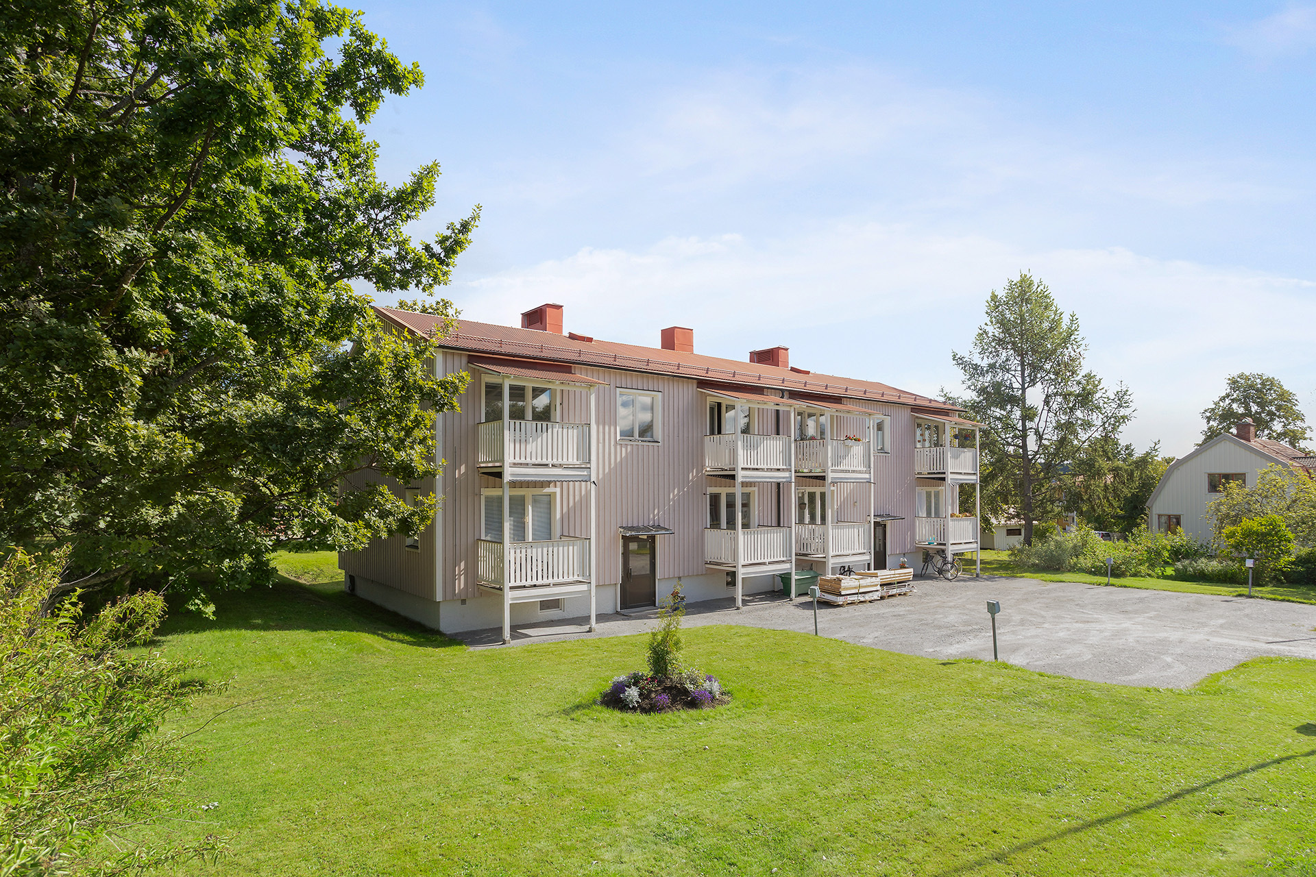 Denna trevliga och lättillgängliga lägenhet erbjuder en bekväm och praktisk boendemiljö. Lägenheten ligger endast några trappsteg upp i huset och har en egen parkeringsplats direkt utanför. Vardagsrummet är lägenhetens största rum och har utgång till en balkong. Köket är mindre men funktionellt.