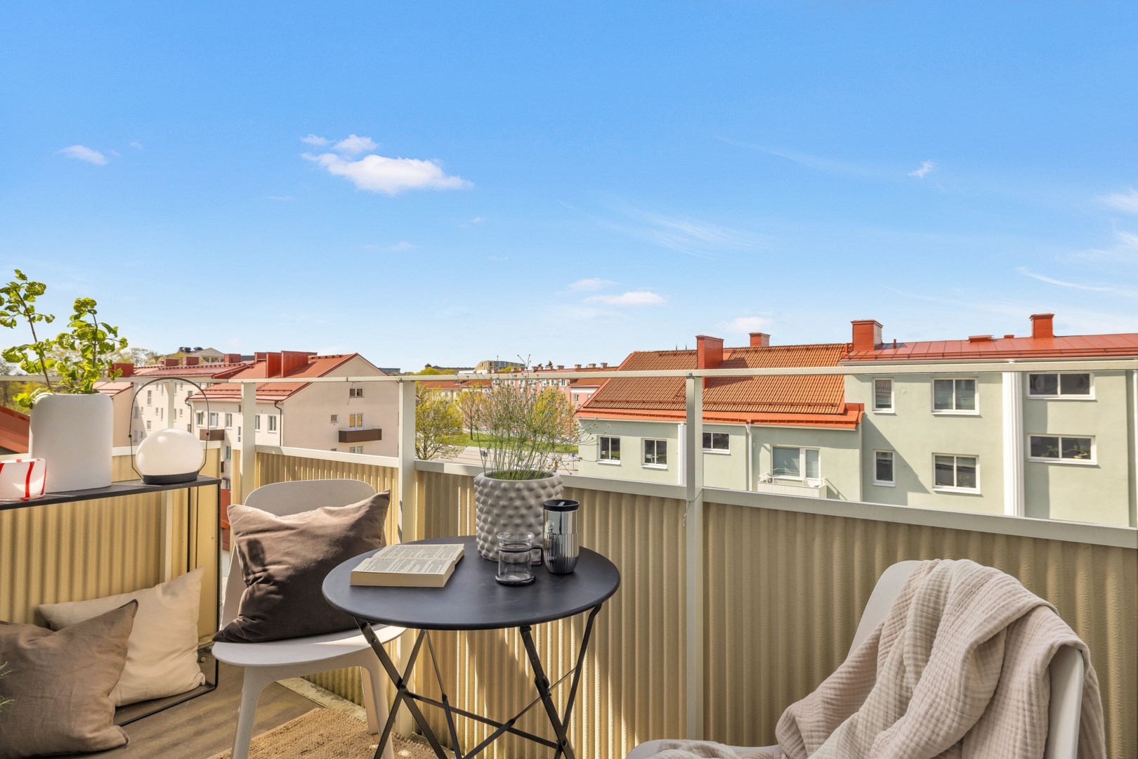 Välkommen till denna välplanerade och mycket trivsamma genomgångslägenhet, belägen högst upp i en vacker 30-talsfastighet. Här bor du i ett lugnt och soligt läge med utsikt över Fålhagens takåsar och Uppsalas siluett och ett fantastiskt ljusflöde tack vare fönster i två väderstreck. Balkongen bjuder