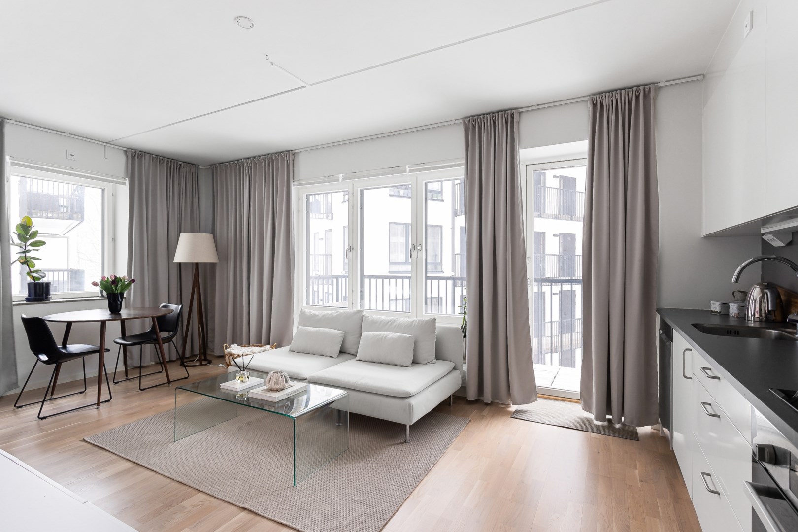 - Stor balkong - Tillhörande källarförråd - Plats för 180 cm bred säng - Vacker industriglasvägg som avskiljer sovdelen - Platsbyggd garderob invid entrén - Gemensam takterrass - Gemensam pool på innergården - Möjlighet till parkeringsplats i garage. Det finns även platser för MC. -