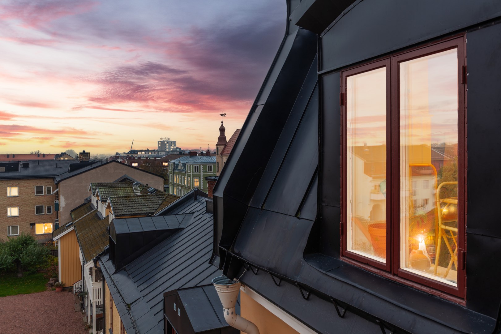 Kom hem till denna unika och charmiga vindsvåning mitt bland takåsarna på Väster! Här möts klassisk 20-talscharm och moderna bekvämligheter i en perfekt symbios. Den generösa takhöjden, den vackra takrosetten och de djupa fönsternischerna skapar en genuin karaktär som är svår att motstå. 1