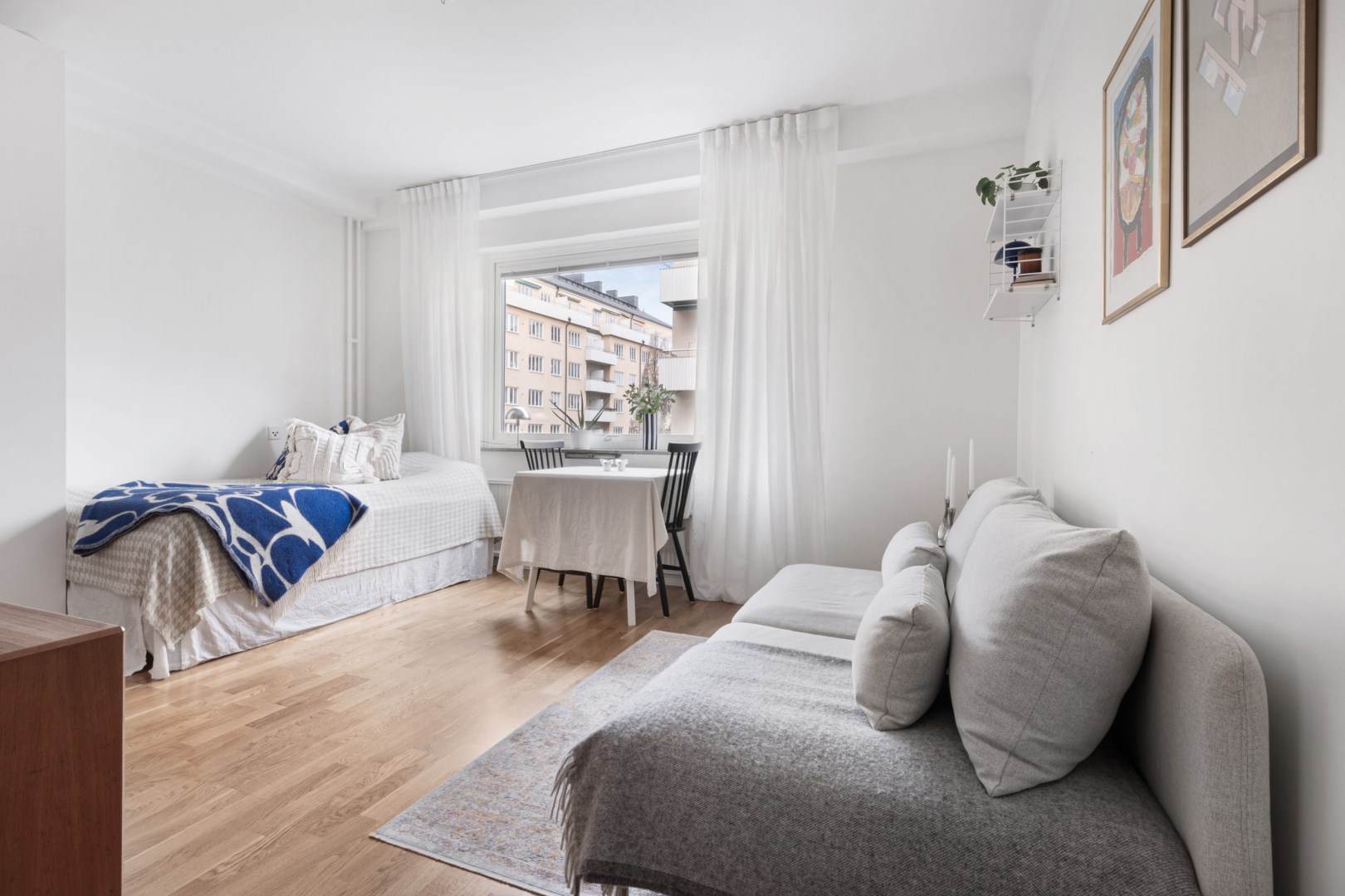 Välkommen till Erik Dahlbergsgatan 27 – en ljus och yteffektiv 1:a om 26 kvm med bästa läge på nedre Gärdet, endast ett stenkast från Tessinparken och Karlaplan. Bostaden är belägen på husets gavel och har ett stort fönsterparti med fint ljusinsläpp. Du välkomnas av en praktisk hall med gott om