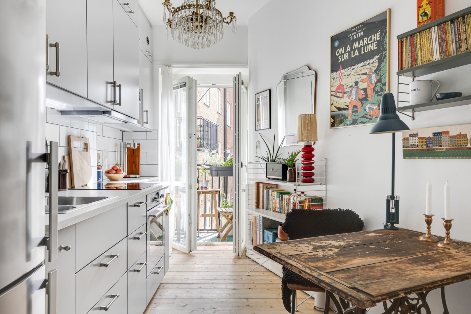 Välkommen till denna smart planerade och genomgående bostad med två balkonger, varav den ena vetter mot innergården och den andra mot Falsterbogatan. Vi kommer in i en rymlig hall med en stor garderob som sväljer det mesta. Vidare in möts vi av ett ljust allrum där både säng, soffa och skrivbord