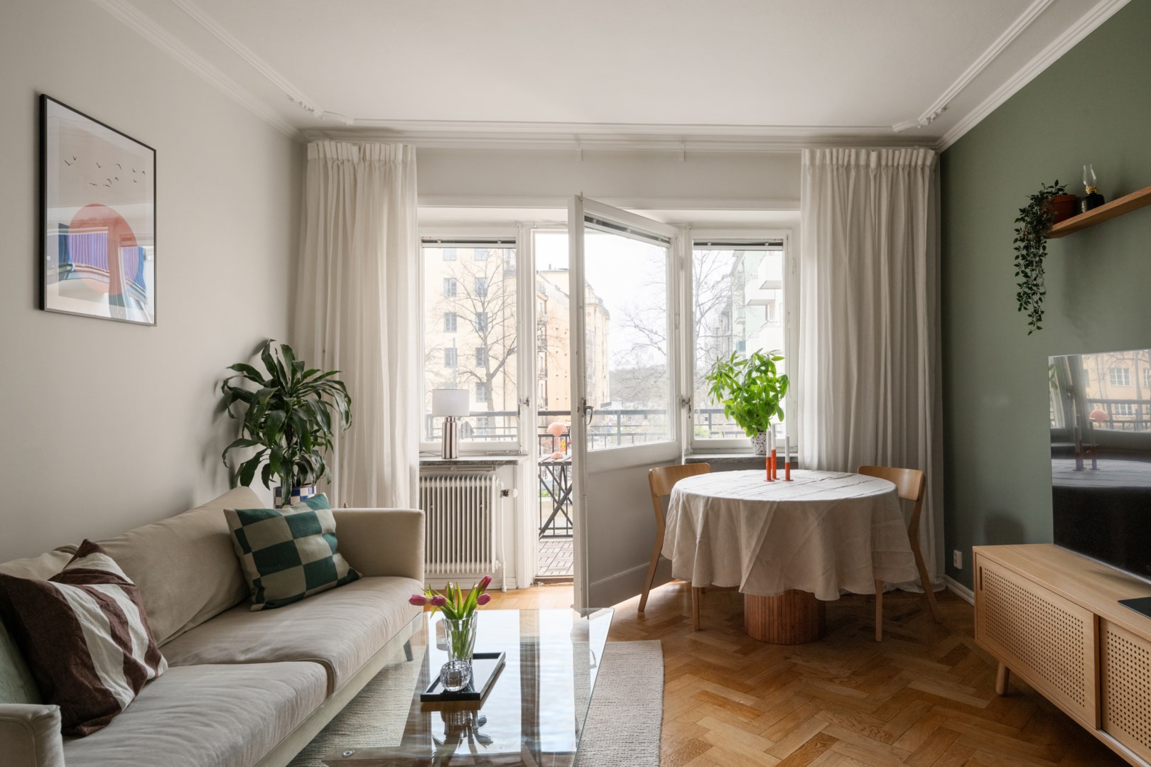 Precis intill Mälarens glittrande vatten återfinns denna välplanerade enrummare med södervänd balkong mot John Ericssonsgatan och utsikt förbi Norr Mälarstrand och Riddarfjärden. Bostaden erbjuder ett stort och trivsamt rum, ett genomgångskök i delvis öppen planlösning samt ett helkaklat