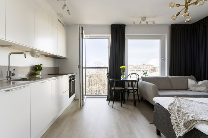 Belägen högt upp bland trädtopparna finner du denna mycket fina, välplanerade och nyproducerade 1a med fransk balkong i fritt samt skyddat läge utan insyn med utsikt över grönskande omgivningar, Globen och Tele2. Ta chansen att flytta in i denna påkostade bostad med genomgående fina och exklusiva