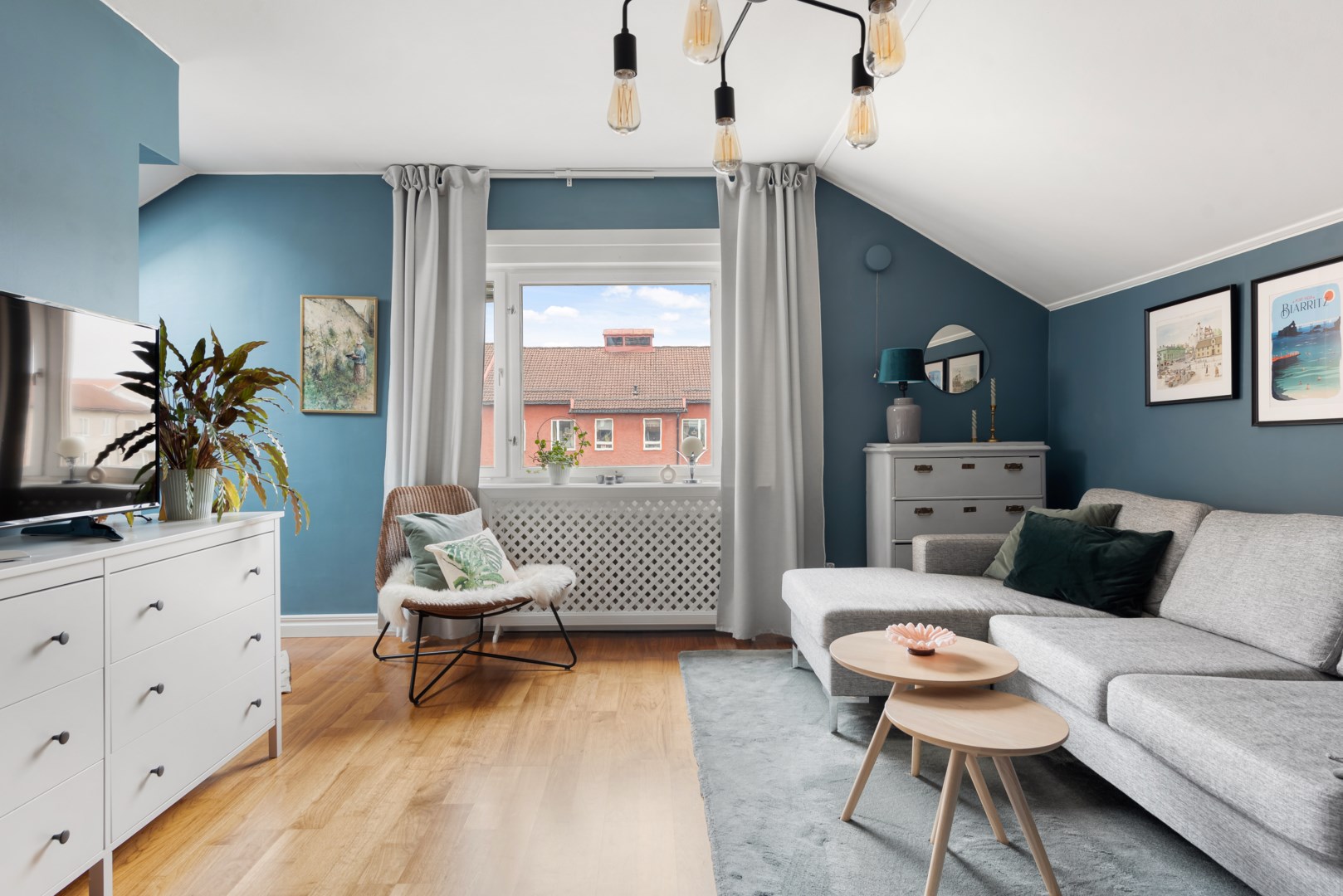 Här bor man i en ljus och fin renoverad lägenhet med fönster i flera väderstreck, i en stabil HSB förening. Sober färgsättning, genomtänkta förvaringslösningar och välplanerat! Bostadens yta disponeras på hall med skjutdörrsgarderob och förråd, helkaklat badrum med tvättmaskin, kök och vardagsrum