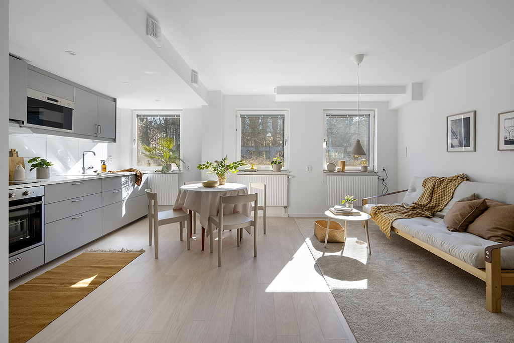 En smart utformad bostad med fina ytor, komplett kök, sovalkov och bra möjlighet till trevlig möblering. Badrummet är förberett för tvättmaskin. 1 rum och Kök I området finns gatuparkering mot avgift och även p-hus. I det absoluta närområdet finner vi Hansa Compagniet och precis utanför dörren