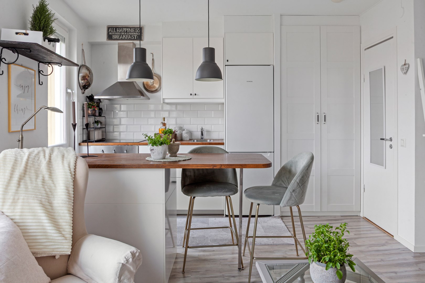 På attraktiv adress väntar denna trivsamma 1 rum och kök med fransk balkong och låg månadsavgift. Lägenheten är genomgående ljus och välplanerad, med ett modernt intryck förstärkt av det enhetliga ljusgrå laminatgolvet. Det fullt utrustade köket erbjuder gott om förvaring och generösa arbetsytor. 1