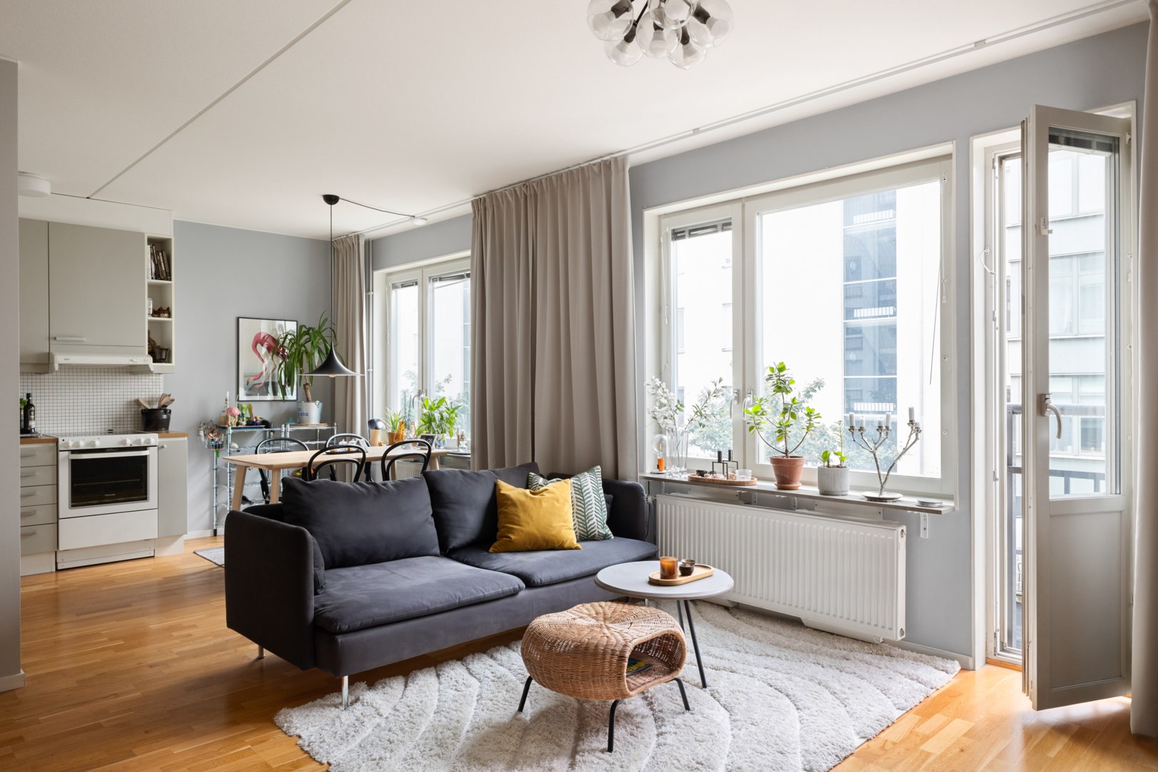 Välkommen till denna smart planerade bostad i central del av Hammarby Sjöstad. De generösa fönsterpartierna i kombination med en väl tilltagen takhöjd skapar en ljus och luftig atmosfär. Den öppna planlösningen mellan kök och allrum öppnar upp flera möbleringsmöjligheter och ger en rymlig känsla.